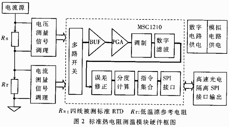 圖2 標(biāo)準(zhǔn)熱電阻測(cè)溫模塊硬件框圖