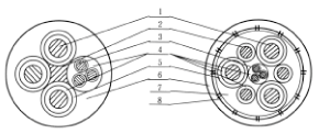 額定電壓0.38/0.66KV的電纜采用下圖所示的A型結(jié)構(gòu),額定電壓0.66/1.14KV及以上的電纜采用下圖所示的A型或B型結(jié)構(gòu)。